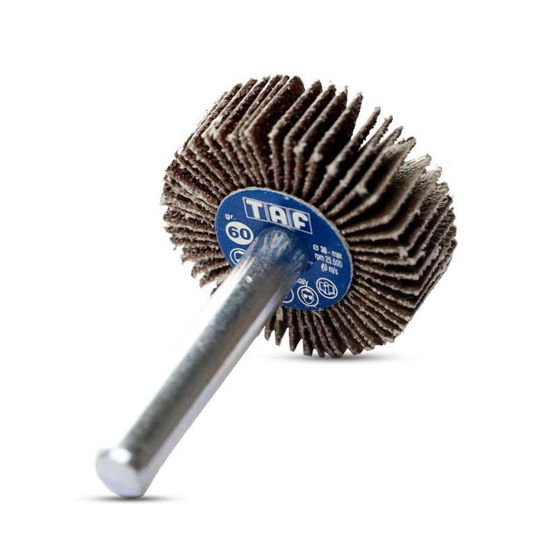 Начало / Продукти / Абразивни дискове / Абразивни мопове / TAF Абразивен моп с алуминиев оксид, едрина 80, вал 6 mm
