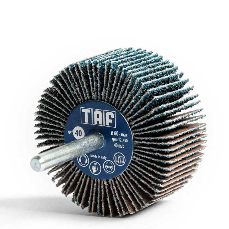 Абразивният моп с ламели от цирконий на TAF Abrasivi се използва на преносими електрически, пневматични и гъвкави шлифовъчни машини. Предназначени са за приложение върху малки повърхности и труднодостъпни места. Изработени от циркониев оксиден плат, те са особено подходящи за шлайфане на неръждаеми стомани. Произведени са от тежък памучен плат (тип X) и гарантират бързо рязане и дълъг живот.