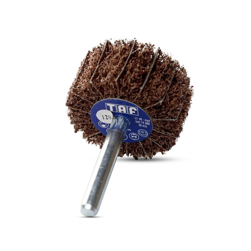 Комбинираните ламелни мопове за сатенено полиране на TAF - RGM19 са произведени с X-Flex плат и високоустойчив абразивен плат. Благодарение на смесената им конструкция, те позволяват леко шлайфане, като същевременно се запазва добро качество на повърхността. Използват се на прави шлайфмашини.