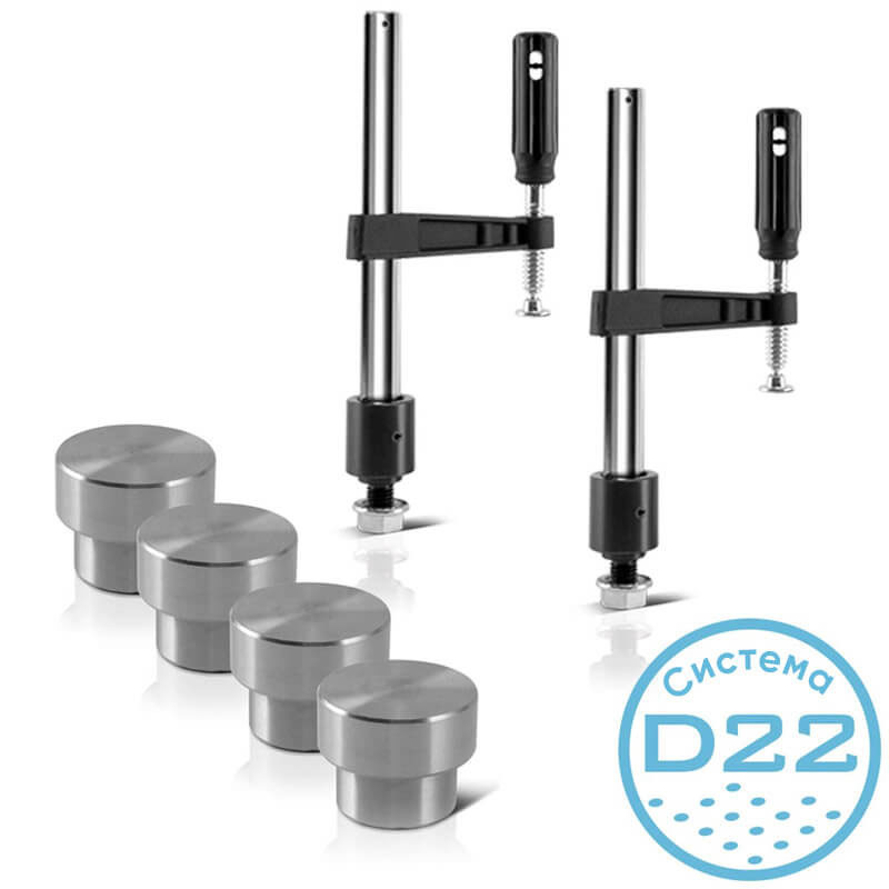 Комплект аксесоари STAHLWERK за заваръчни маси със система от отвори D22, състоящ се от две винтови скоби/скоби 80 x 200 mm и четири затягащи болта и впечатлява с широката си гама от възможни приложения за почти всички заваръчни работи.