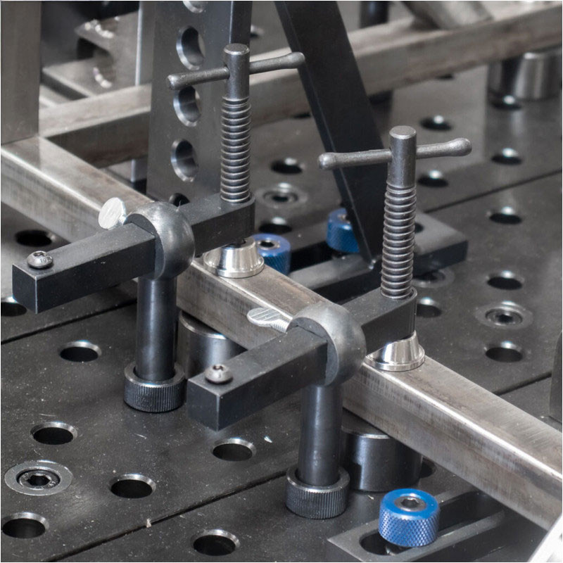 Поставете T-образните стяги в отворите от 16 mm на плота BuildPro® или щранговите блокове за бързо и лесно верикално затягане.