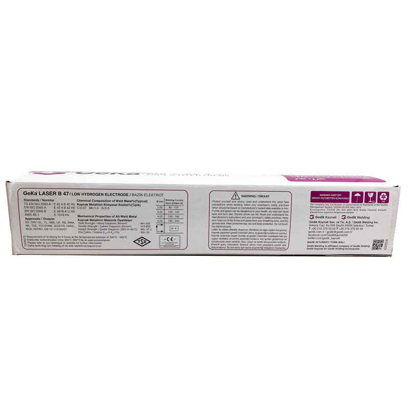 Базичните електроди на Geka Laser B-47 са подходящи за употреба при заваряване в нестандартни позиции, с изключение на заваряване във вертикално положение надолу.