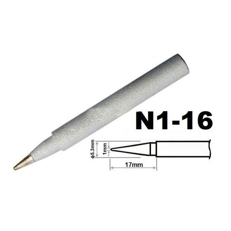Човка за поялник N1-16 от ZHONGDI с форма на конус на върха и куха основа с външен диаметър Ø 7.3 mm и Ø 1 mm на върха.