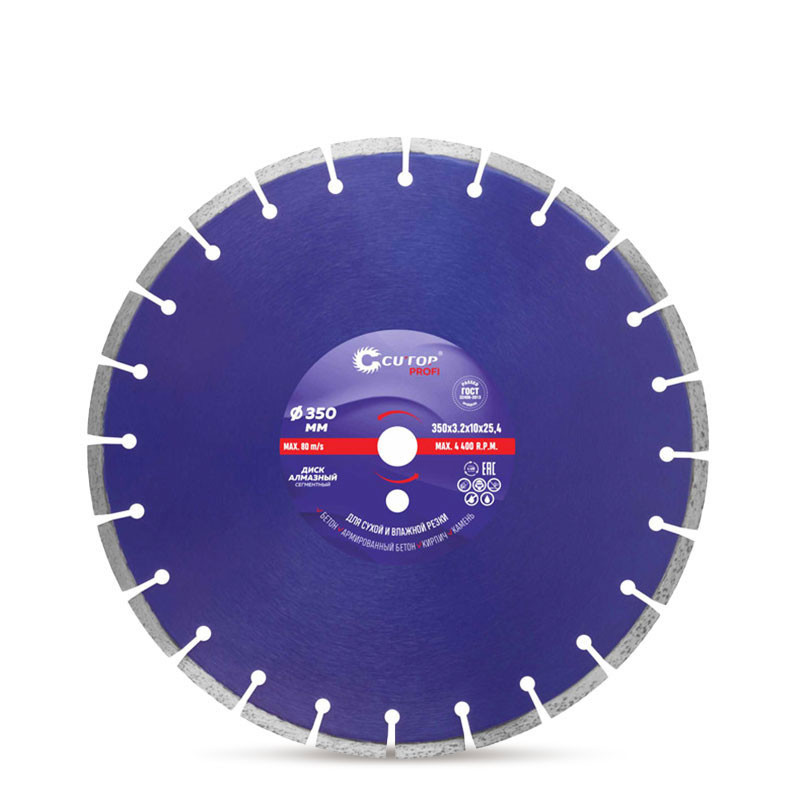 Диамантен диск Cutop profi е предназначен за сухо и мокро рязане на бетон, стоманобетон, плочки, тухли, камък и други силно и средно абразивни материали. Възможност за рязане на стоманобетонни конструкции, тухли, варовик и други твърди материали.