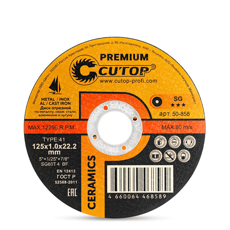 Предназначен за рязане на метал, неръждаема стомана, алуминий и чугун. Керамичният алуминиев оксид, включен в състава, значително повишава ефективността на диска при рязане на чугун. Има добра ударна якост.
