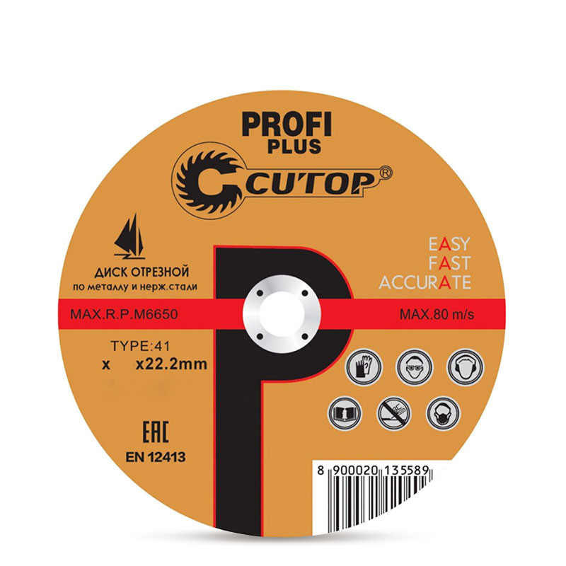 Индустриален режещ диск CUTOP PROFI PLUS за метал и неръждаема стомана с подобрена ефективност на диска, което ви позволява да увеличите броя на разрезите няколко пъти. Използват се уникални производствени технологии.