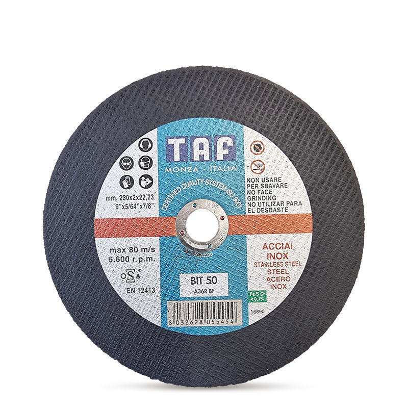 Тънък режещ диск TAF BIT50, предназначен за бързо и прецизно рязане на стомана, неръждаема стомана и чугун. Подходящ за обработка на малки и средни сечения. Благодарение на изключителната си тънкост, осигурява чист разрез без образуване на мустаци и минимално нагряване на детайла.