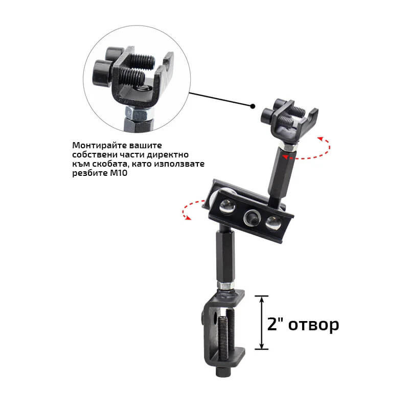 Сигурно дръжте приклада във всяка позиция с регулиране и заключване на сферичните шарнири.