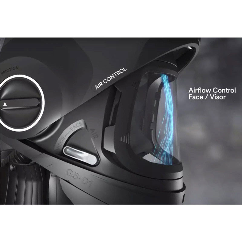 За максимален комфорт, иновативната система за оптимизиране на въздушния поток на маската G5-01 ви позволява да насочвате въздушния поток към лицето, визьора или някъде по средата.