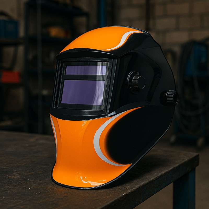 Оборудван с LCD дисплей с течни кристали, постоянен UV/IR филтър и двойно захранване (батерия CR2450 + слънчеви клетки), шлемът реагира мигновено на запалването на електрическата дъга, осигурявайки ясна видимост при силна светлина и пълна защита при тъмна светлина.