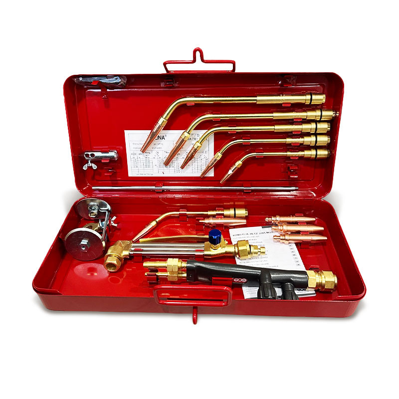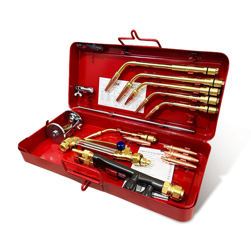Висококачествен комплект за заваряване, който включва: дръжка, режеща фреза, комплект горелки, количка и дюзи.