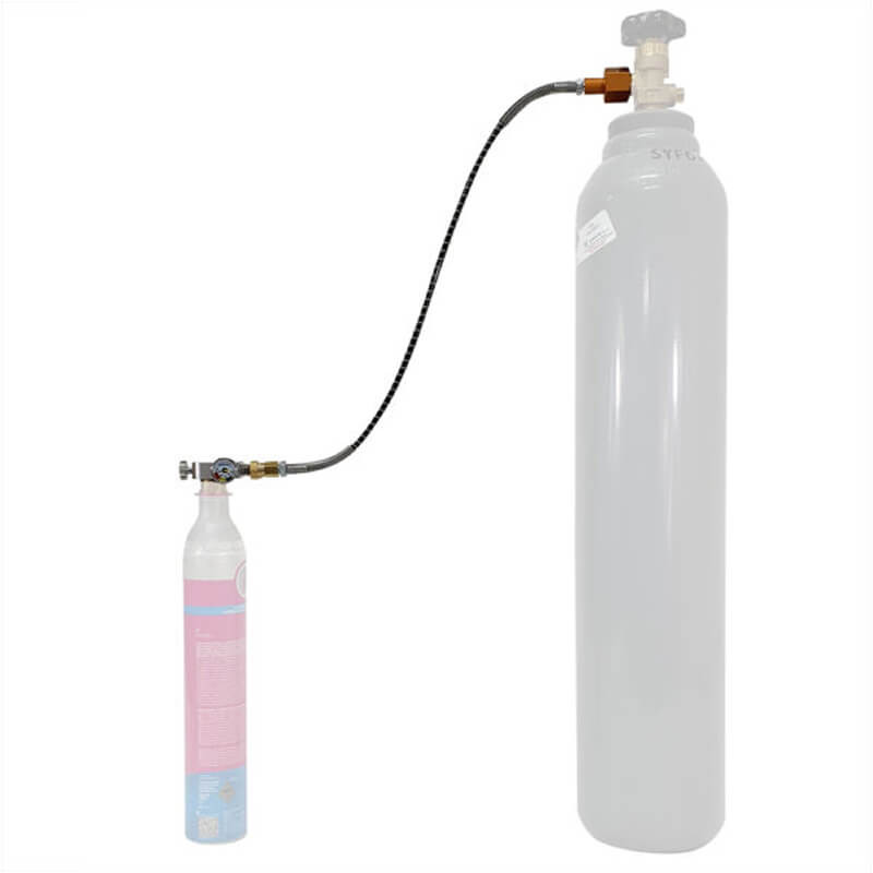 TECWELD Маркуч за самостоятелно пълнене на бутилки/капсули Sodastream Pink + комплект резервни уплътнения съвместим с моделите Duo, Art и Terra.