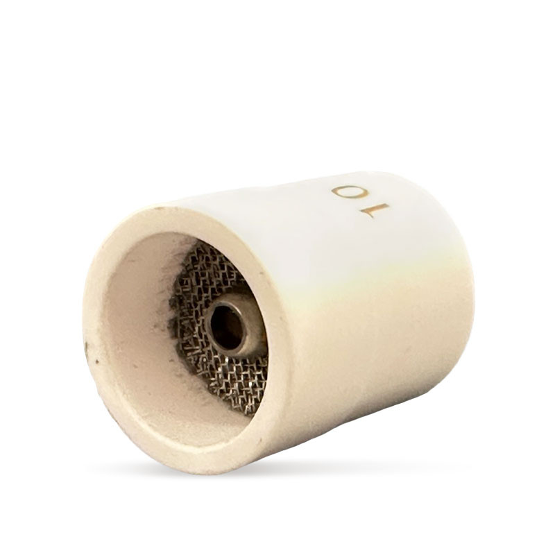 Керамичните дюзи с цедка осигуряват ламинарен поток от защитен газ, което води до висококачествена, чиста заварка. Дават възможност за голямо удължаване на електрода, което дава възможност за заваряване на труднодостъпни места. Те са предназначени за заваряване с постоянен ток.