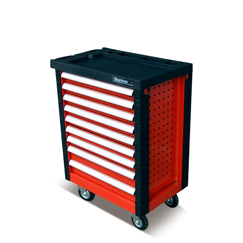 Стоманена количка с девет разтегателни чекмеджета на ролкови лагери.