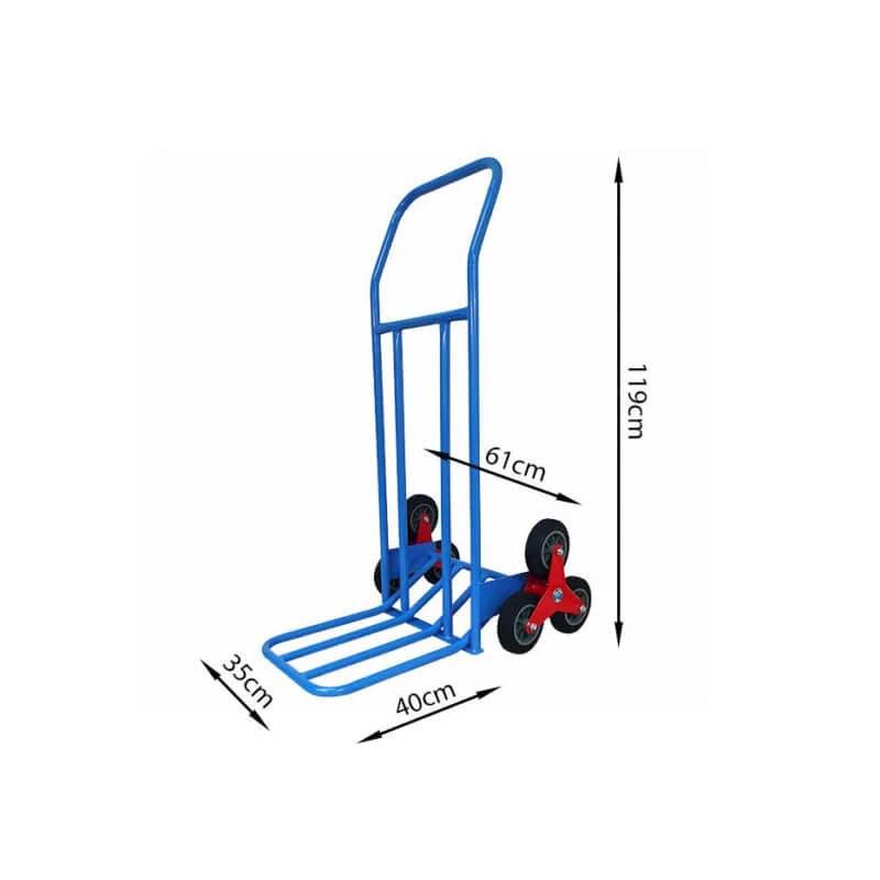 Стълбищната транспортна количка е идеална за складове, халета, работилници, офиси, градини и домове. Благодарение на здравата си и солидна конструкция, той ще транспортира товар до 180 кг. Подсилената платформа позволява удобен достъп до товара, а опцията за сгъване минимизира мястото за съхранение на количката. Здравите тройни колела и конструкцията, пригодена за стълби, ще направят транспортирането на товара до първия етаж много лесно!