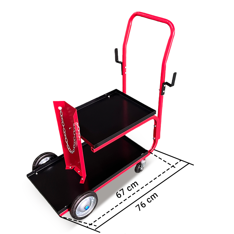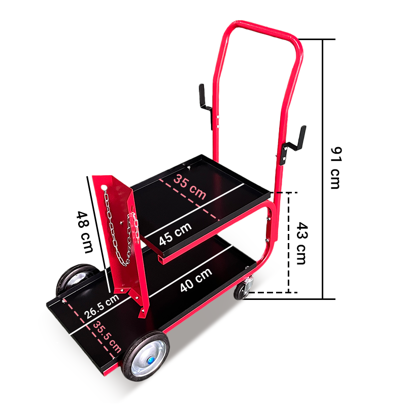 Лека и удобна заваръчна количка Z-Master с размери 77 x 44 x 56 см, подходяща за малки заваръчни апарати. Конструкцията от 1 мм стомана я прави стабилна и надеждна, като същевременно остава лесна за придвижване.
