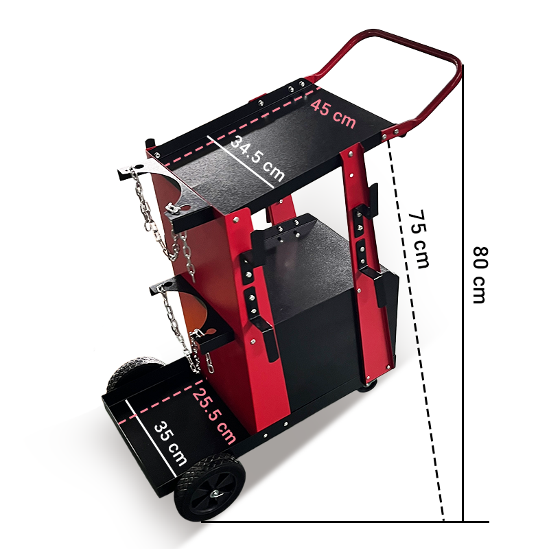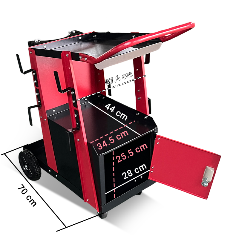 Практична и универсална количка Z-Master с размери 90 x 44 x 91 см, подходяща за разнообразни заваръчни приложения. Металната конструкция е устойчива и стабилна, а работната платформа осигурява място за заваръчен апарат и допълнителни аксесоари.