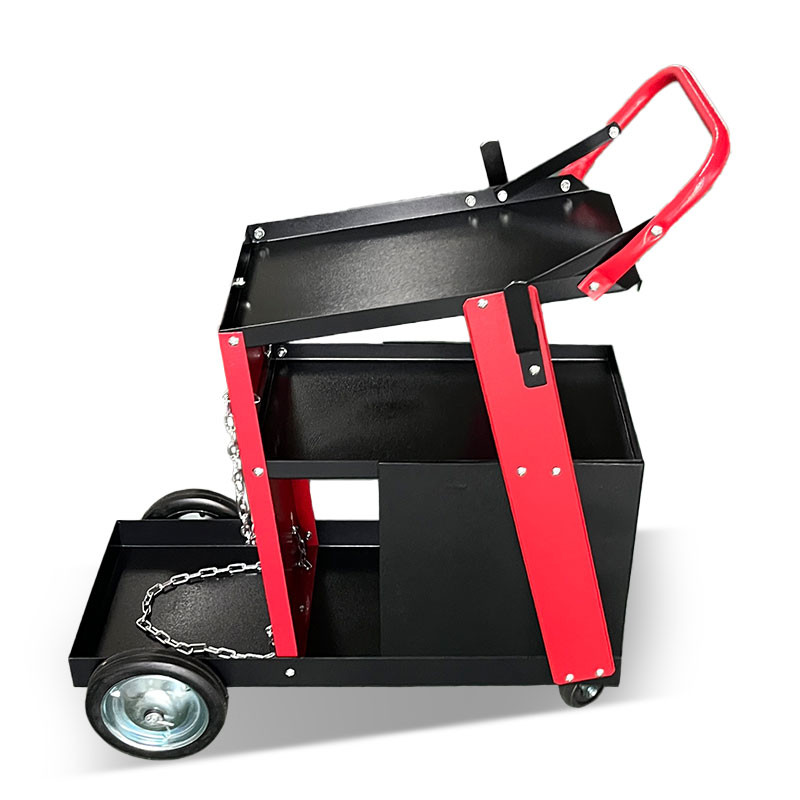 Функционална количка, която съчетава удобство при преместване на заваръчен апарат с практично съхранение на аксесоари и инструменти. Снабдена е с 4 метални чекмеджета, които позволяват бърз достъп до всички нужни консумативи.