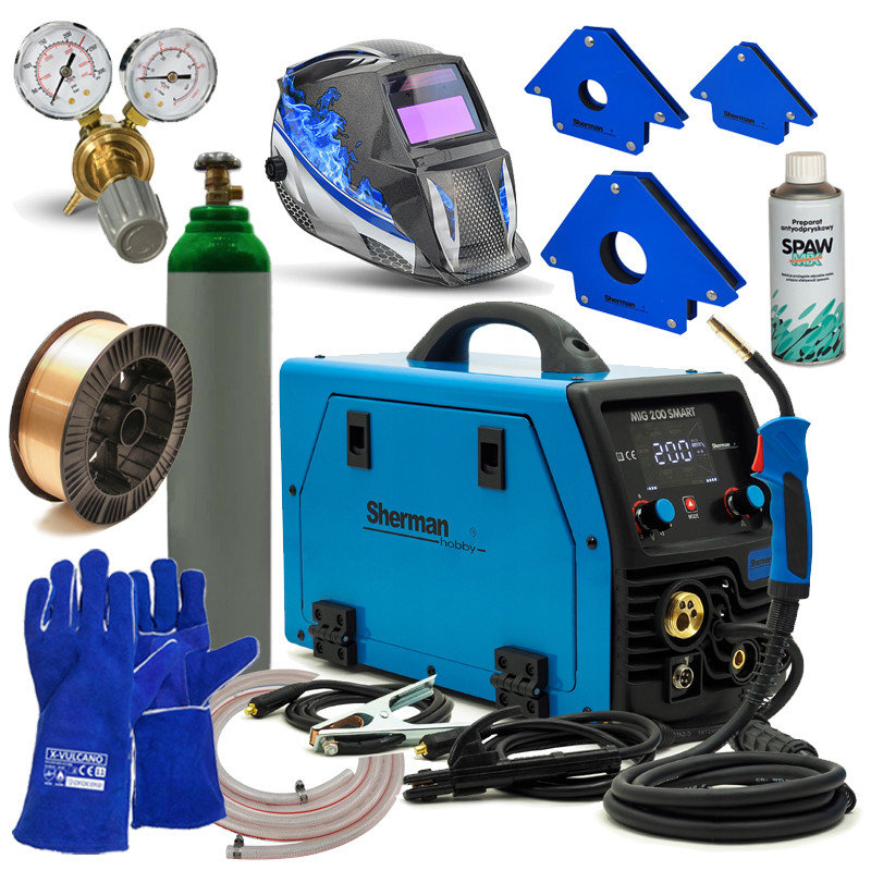 Стартовия Комбо продукт за заварчици с Инверторен заваръчен апарат Sherman MIG 200 SMART - Вариант 1 включва: