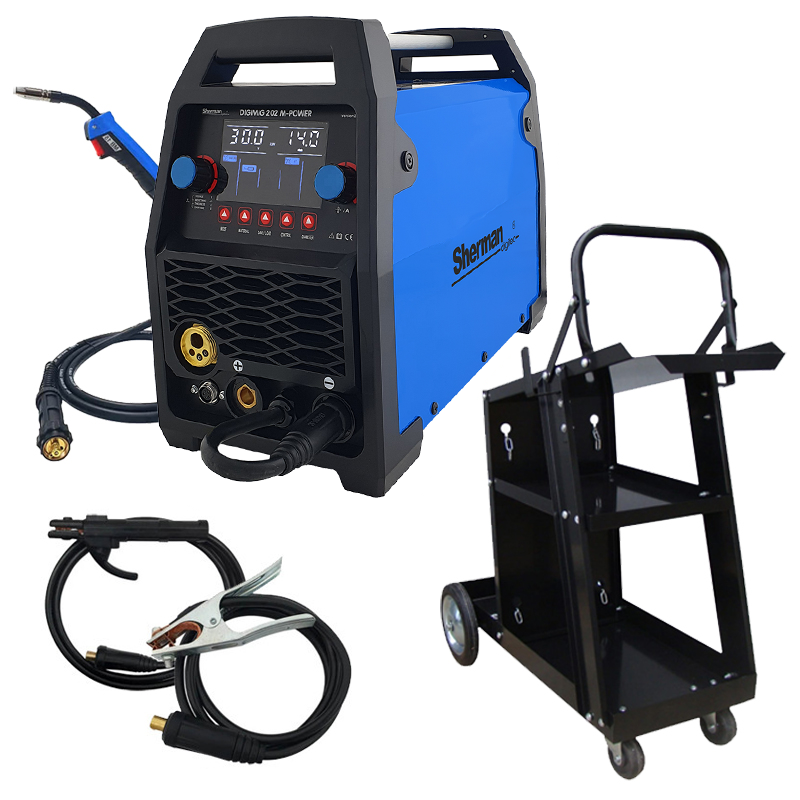 Комбо продукт за заварчици с количка и Синергичен инверторен заваръчен апарат SHERMAN DIGIMIG 202 M-POWER включва: