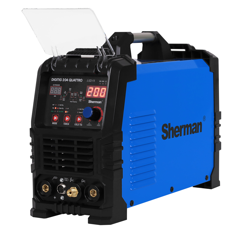 Заваръчният апарат DIGITIG 204 QUATTRO се използва за ръчно TIG HF и MMA (покрит електрод) заваряване на стомана и цветни метали с постоянен ток с възможност за използване на пулсации на тока. Sherman DIGITIG 204 QUATTRO е апарат с функции 4 в 1: ММА, TIG HF, ВИГ студено заваряване, плазмено рязане без HF.