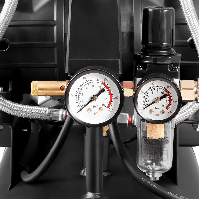 Тих компресор с 10 бара, 50 л резервоар, 69 dB и 2 безчеткови мотора без износване с обща мощност 3.78 к.с. / 2780 вата