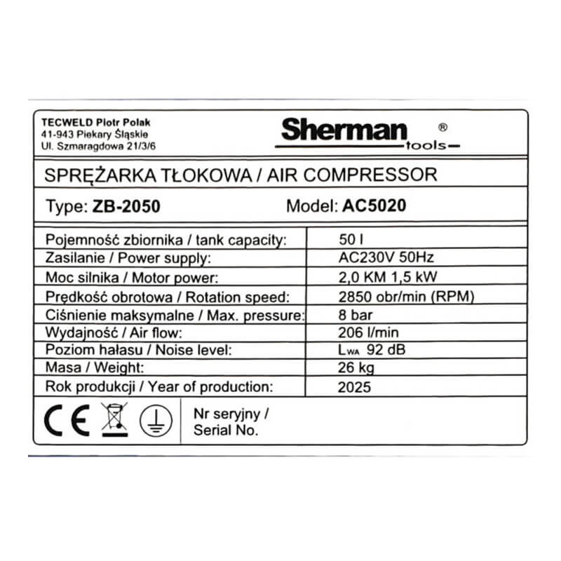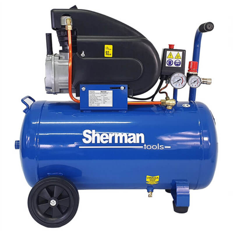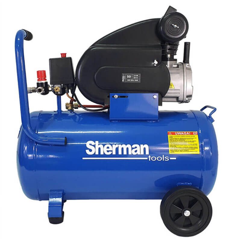 Този бутален въздушен компресор на Sherman - AC5020, пълен с масло, има широк спектър от приложения, включително напомпване на гуми и аксесоари, захранване на пневматични инструменти (напр. гаечни ключове и бормашини), боядисване със спрей и почистване на повърхности от прах и мръсотия. Това е универсално устройство, идеално за работилници, промишленост, както и за домашни и градински проекти.