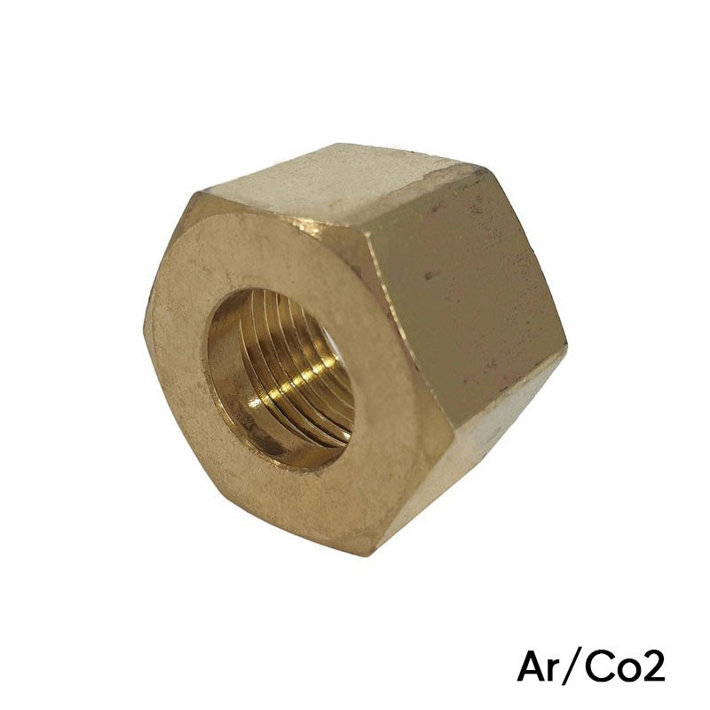 Присъединителната гайка за Ar/CO2, модел GNNLW-R#15-C, е елемент, предназначен за закрепване на редуцир вентила към газовата бутилка.