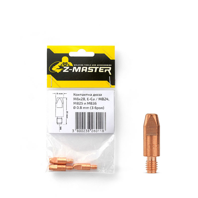 Контактна дюза с дължина 28 mm и резба M6 mm