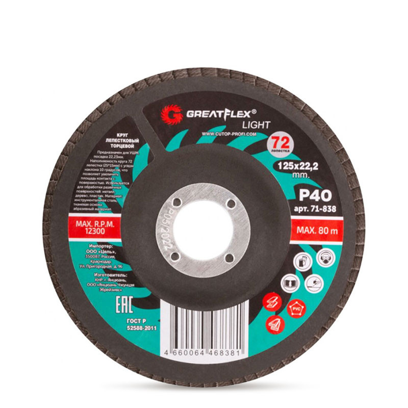 При производството на Ламелен диск за шлайфане GreatFlex Light се използва гъвкав абразивен материал, състоящ се от тъканна основа, върху която се нанася алуминиев оксид - корунд. Произведено по технология и качествен контрол.