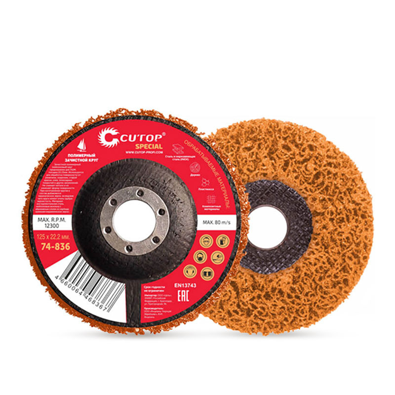 Почистващ диск Cutop Special 125x22.23 mm, предназначен за ъглошлайфи. Използва се за третиране на повърхности от ръжда, корозия, стара боя, лепило, епоксидни покрития и други замърсители.