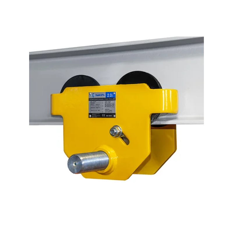 Релсов плъзгач за IPE и T греди. Колелата са с лагери. Лебедката може да се закачи направо за ухото на плъзгача посредством кука или шегел.