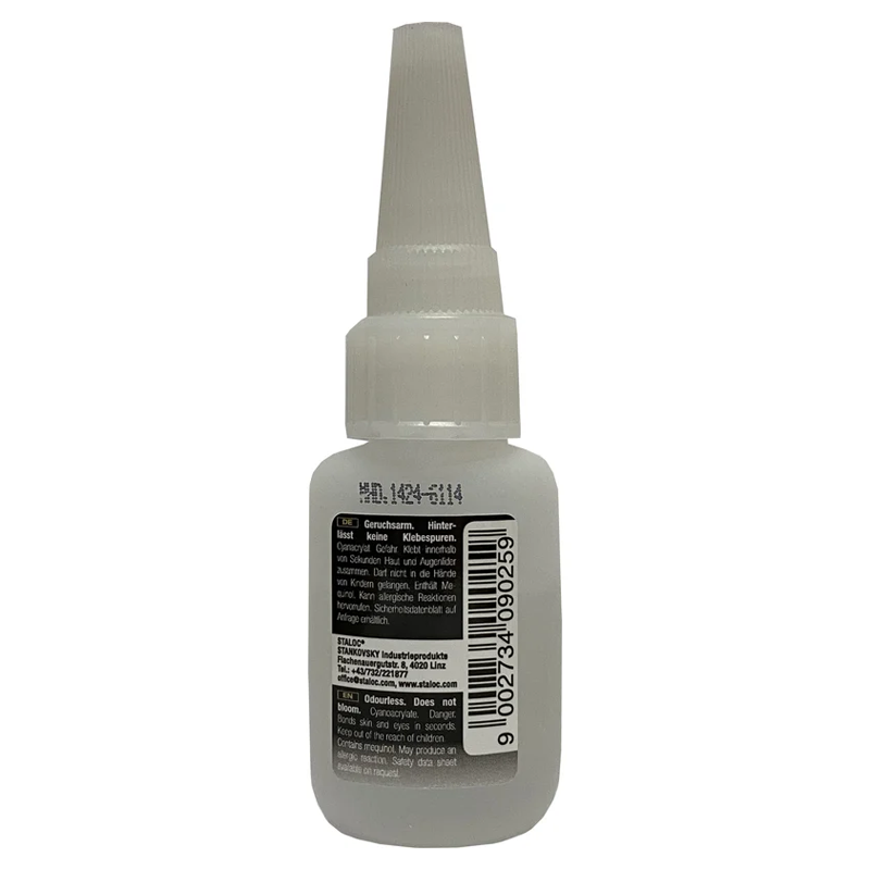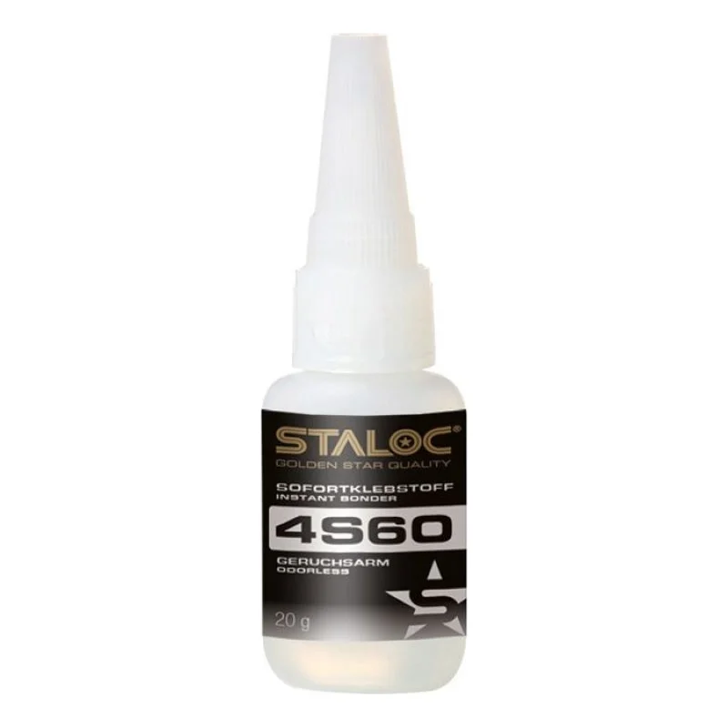 STALOC 4S60 е универсално цианоакрилатно моментно лепило със слаб мирис, нелетливо. Препоръчва се за всички приложения, където лепилото не трябва да оставя видими остатъци (без ефект на цъфтеж).