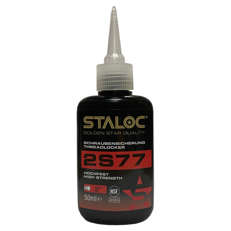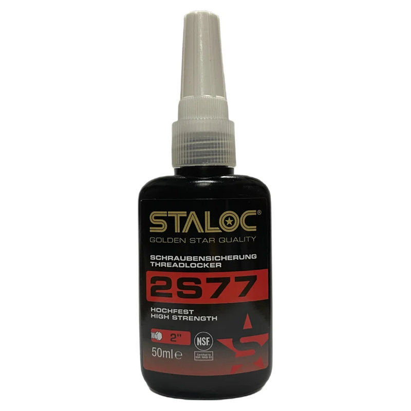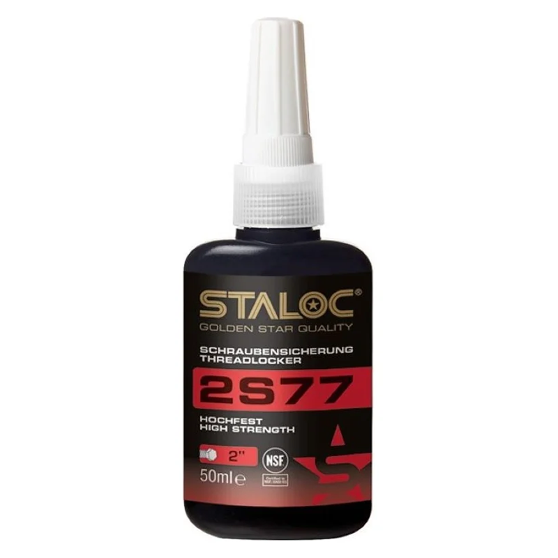 STALOC 2S77 е високо издръжливо червено анаеробно лепило за залепване и уплътняване на метални резбови съединения. Високият му вискозитет и тиксотропия го правят подходящ за големи резби. Предлага повишена устойчивост на корозия, вибрации, вода, газове, различни масла, въглеводороди и много други химикали.