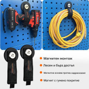 Магнитен държач с велкро, подходящ за по-прецизно съхранение на маркучи, кабели, въжета, бормашини и други.