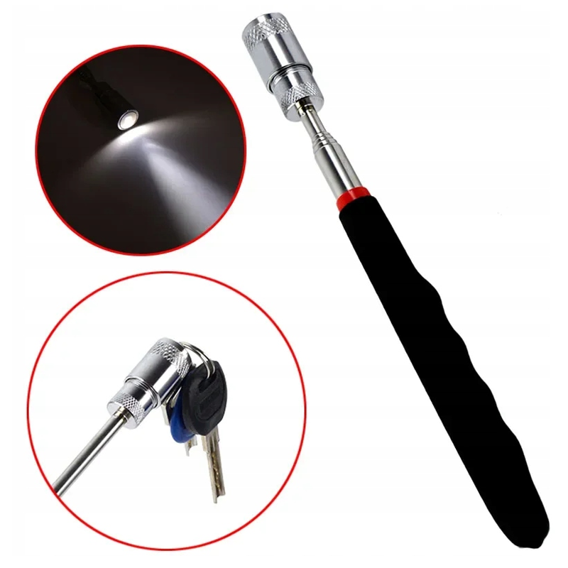 Телескопичният магнит е предназначен за повдигане на всякакви малки метални предмети с помощта на магнит, монтиран в края на рамото. Телескопичният дизайн позволява регулиране на дължината.