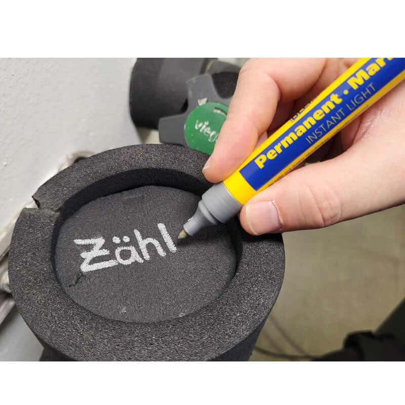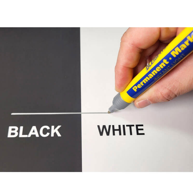 За трайно маркиране и писане върху особено тъмен и светъл материал, например метал, гума, пластмаса, стъкло, картон, дърво и др.