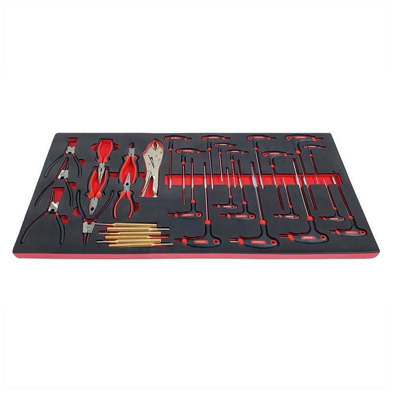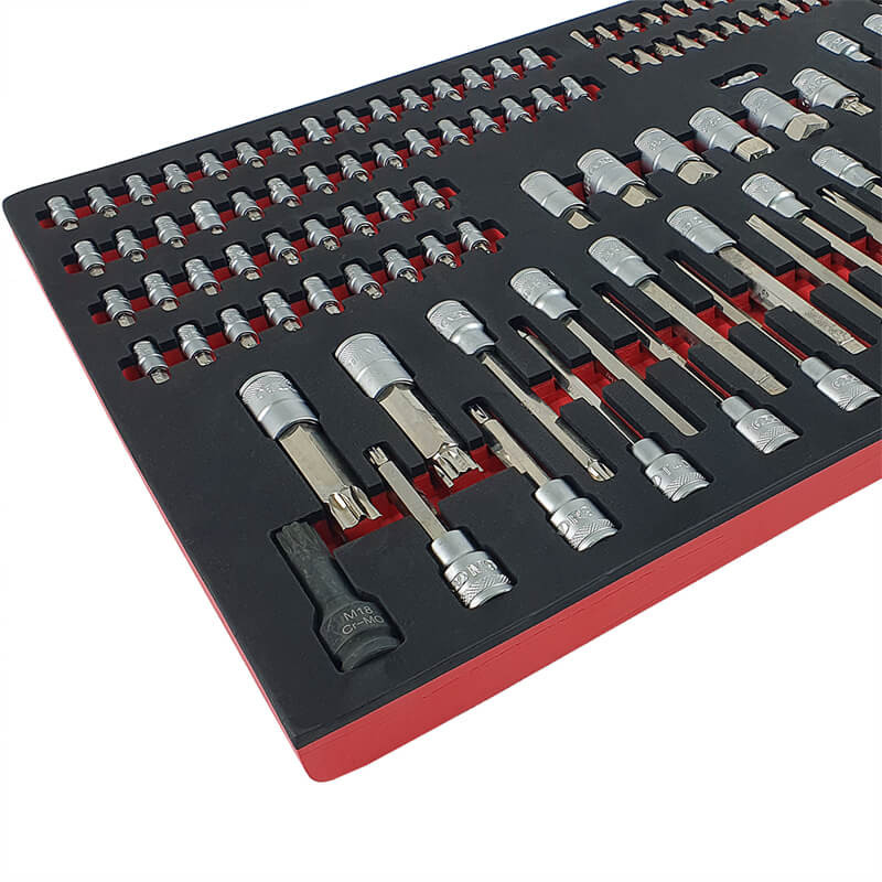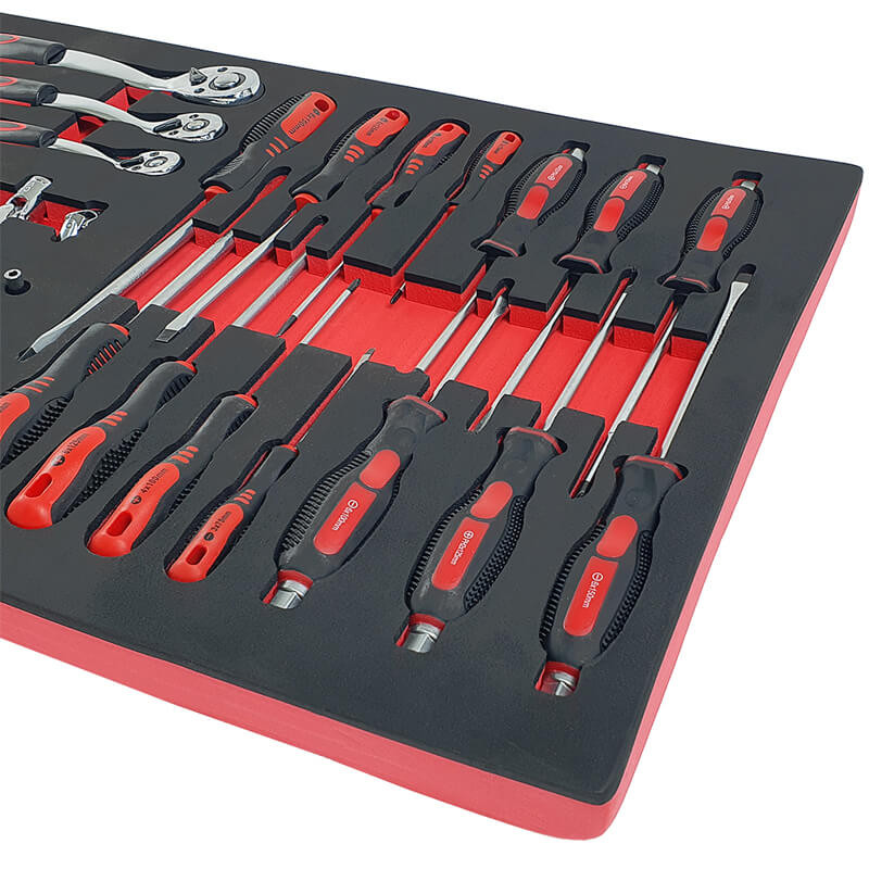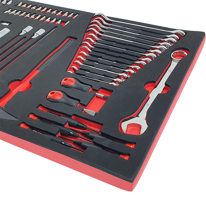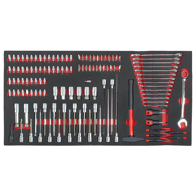 Инструментите са поместени в естетически приятни, контурирани вложки от EVA пяна , които осигуряват отлична организация и подреденост в работилницата. Вложките пасват идеално в работилнически колички и шкафове за инструменти , което позволява бърз достъп до необходимите инструменти и поддържане на подредено работно място (размери на вложките: 40,5 см x 83,7 см).