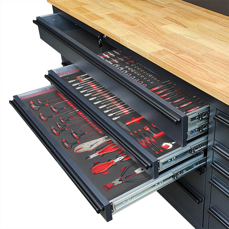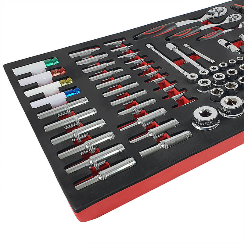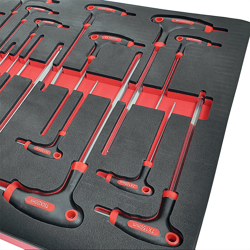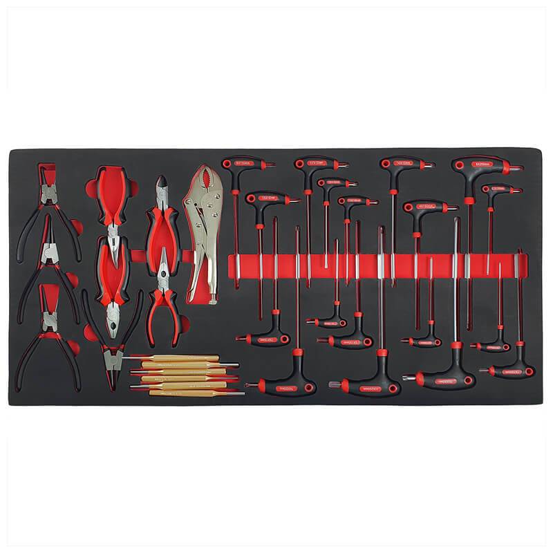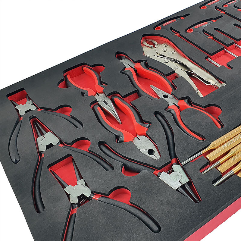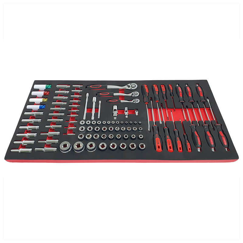 Инструментите са поместени в естетически приятни, контурирани вложки от EVA пяна , които осигуряват отлична организация и подреденост в работилницата. Вложките пасват идеално в работилнически колички и шкафове за инструменти , което позволява бърз достъп до необходимите инструменти и поддържане на подредено работно място (размери на вложките: 40,5 см x 83,7 см).