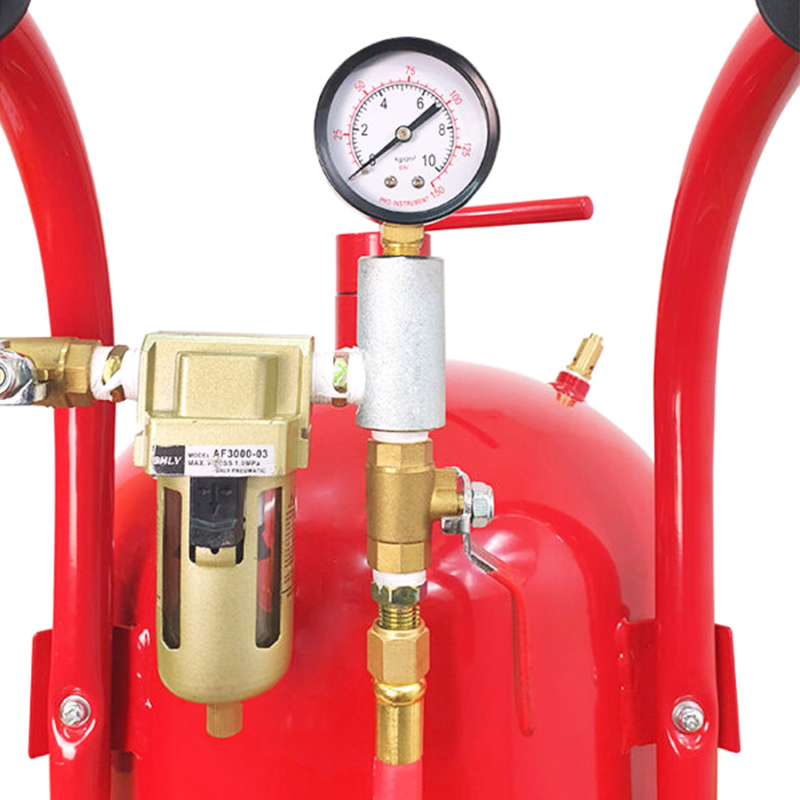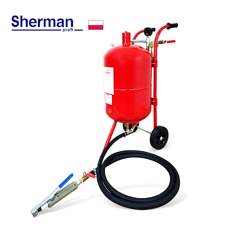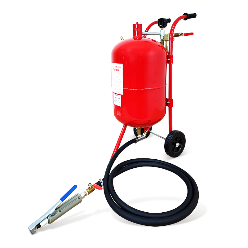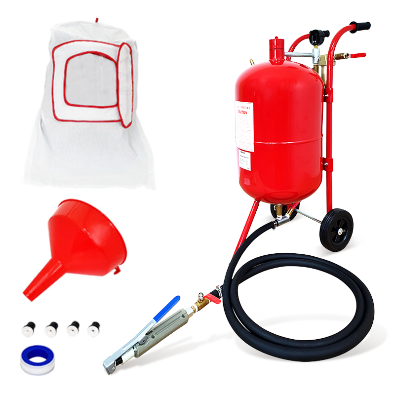 38-литров сифонен пясъкоструен апарат се използва за почистване на силно замърсени метални части, автомобилни апарати, части на двигателя, джанти, изпускателни системи от ръжда, остатъци от боя и др.