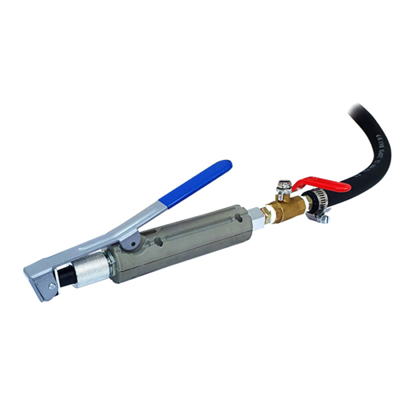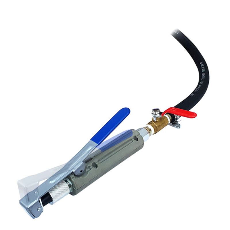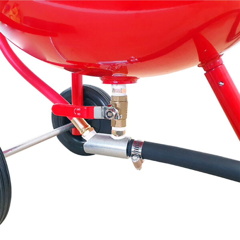 Пясъкоструйната машина е оборудвана с направляваща дръжка и две колела за лесно транспортиране и маневреност.