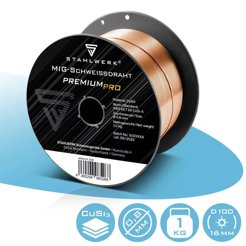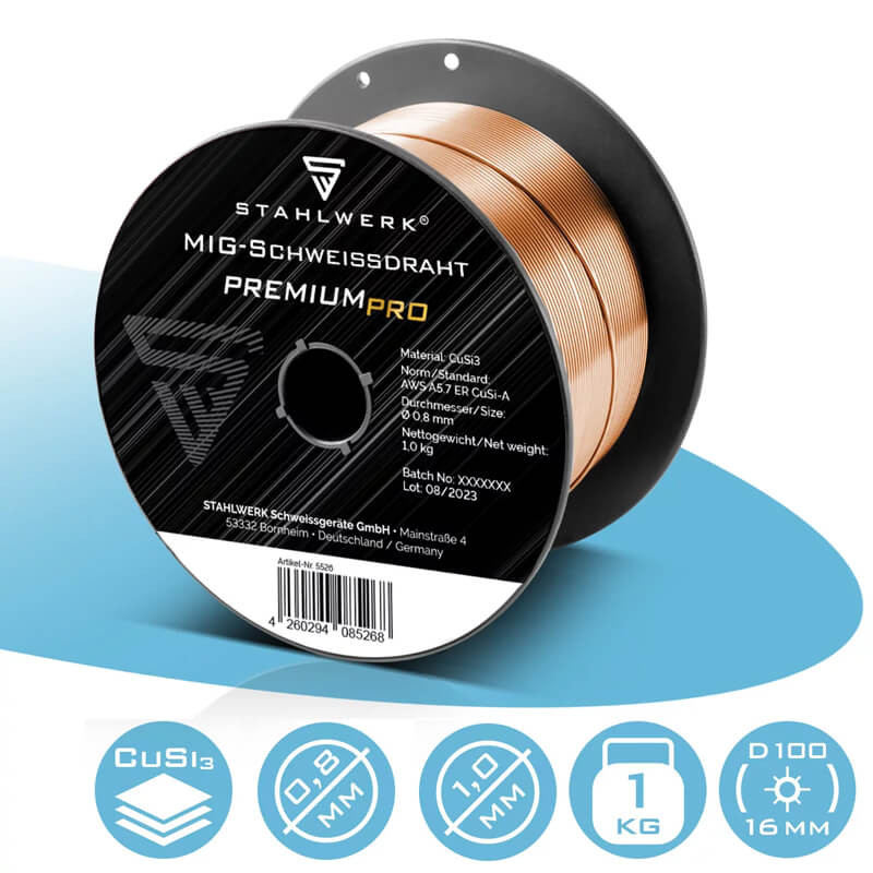 Внимание: Ролките заваръчна тел от 1 кг имат дорник за макара с диаметър 16 мм и не могат да се използват със STAHLWERK MIG 270 ST, както и със заваръчна машина STAHLWERK MIG MAG 200 Double Pulse Pro.