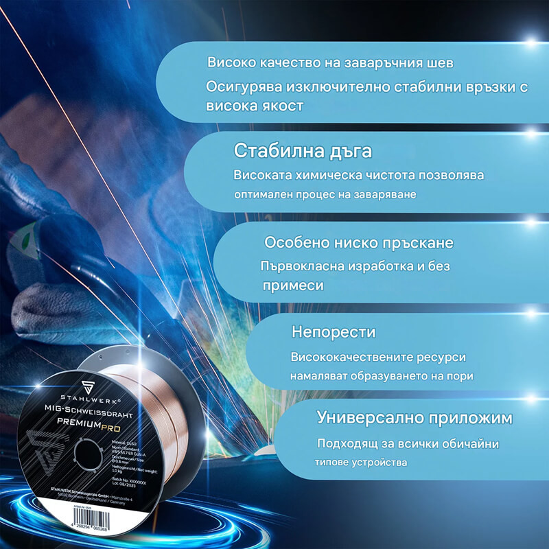 Медна тел за MIG спойка за мед, месинг, неръждаема стомана и галванично/електролитно поцинковани стоманени листове с дебелина макс. 1.5 мм
