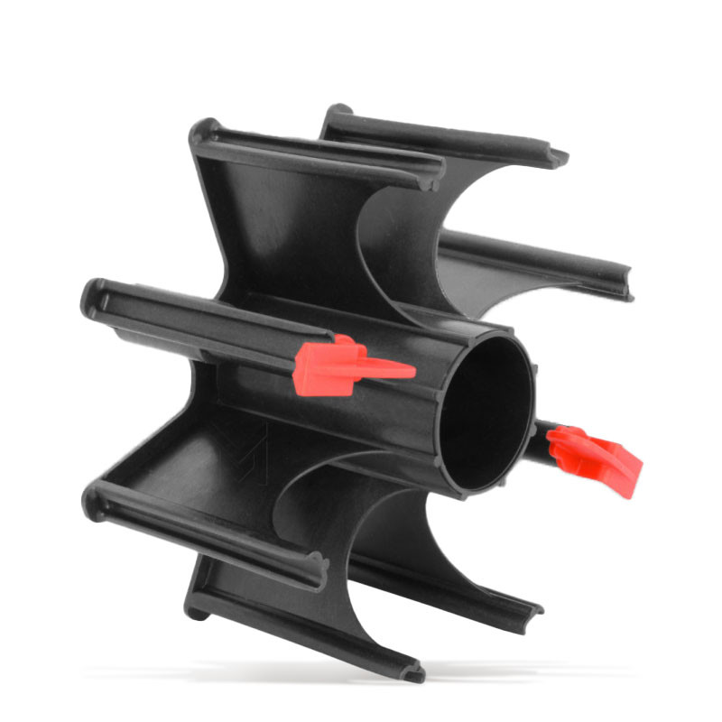 Осем рамена прецизно фиксират телта върху фидера, а двете ключалки предпазват макарата от изпадане.