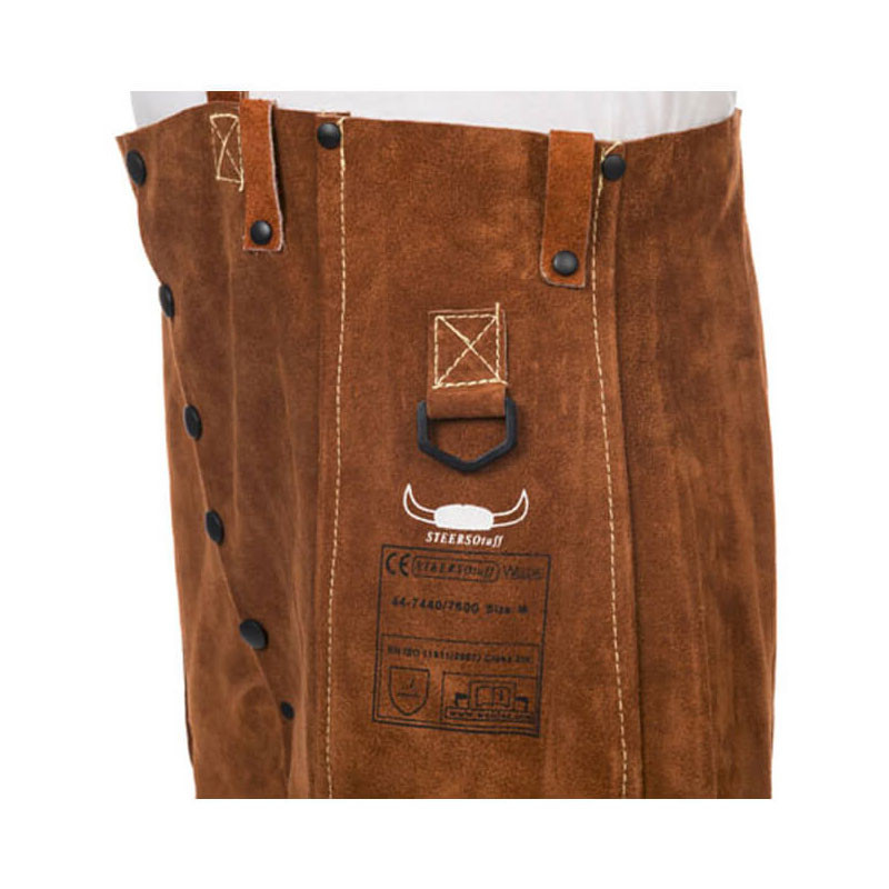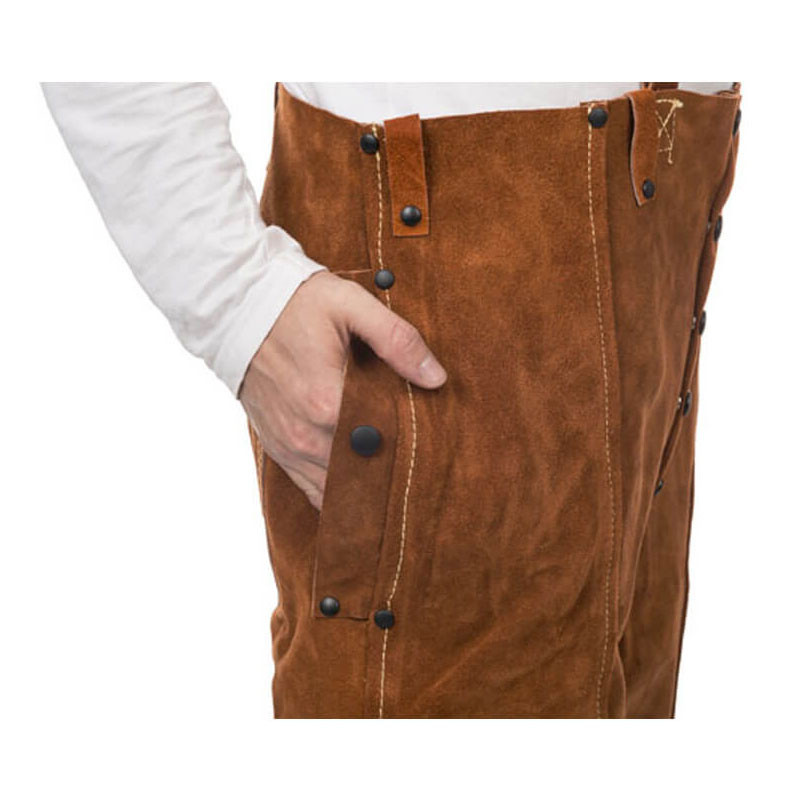 Панталоните за заваряване Lava Brown са изработени от огнеупорна и топлоустойчива телешка цепена кожа. Шевовете са двойно зашити с издръжлива и устойчива 5-кратна KEVLAR нишка. За закопчаване се използват велкро и притискащи се непроводими копчета.