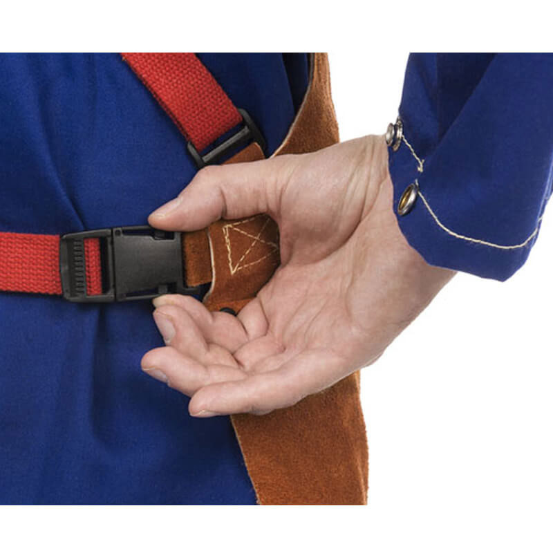 WELDAS Престилката за заваряване Lava Brown™ е изработена от издръжлива и еластична цепена телешка кожа.