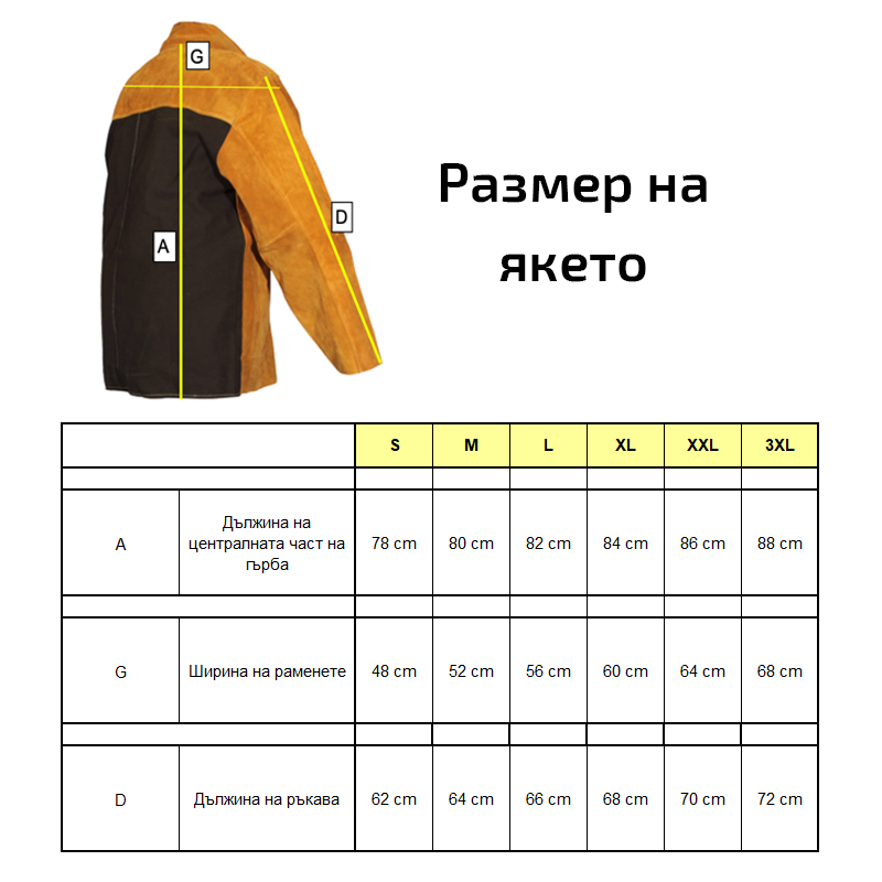 Задната част е изработена от огнеупорен памук (FR), който подобрява вентилацията и осигурява комфорт при продължително носене, като помага на тялото да остане по-хладно дори при висока температура и влажност. Високата защитна яка с капак и велкро закопчаване предпазва врата от искри и пръски, а предното велкро закопчаване осигурява плътно прилепване и надеждно покритие.