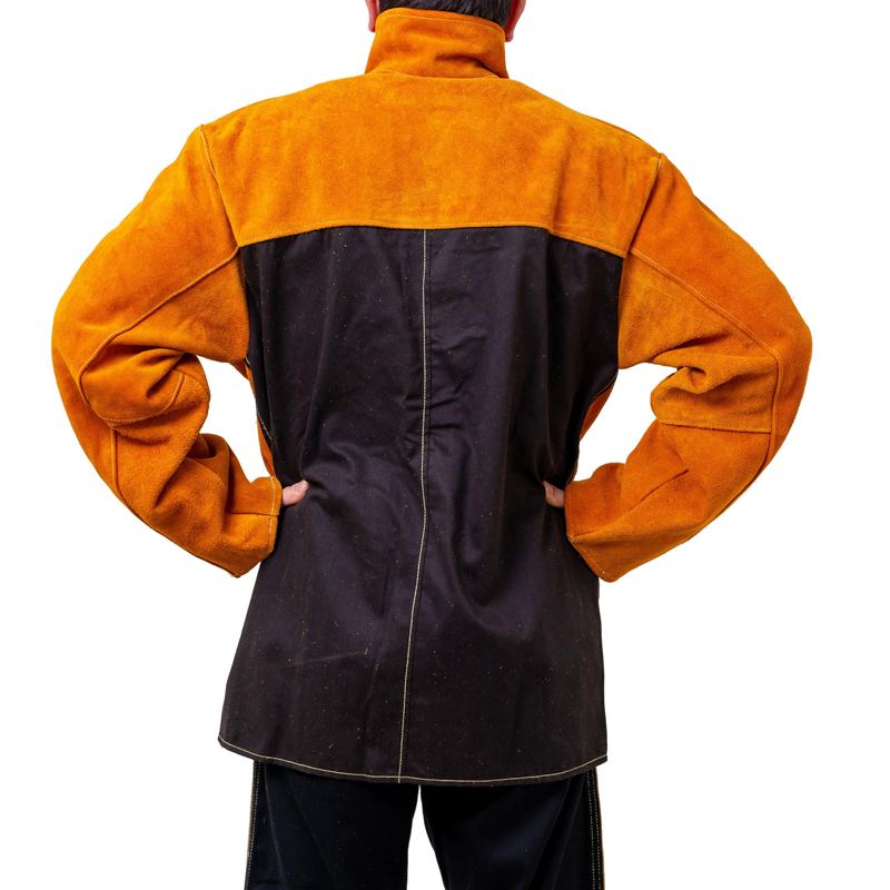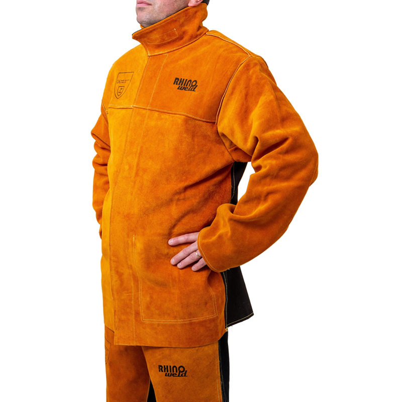 Заваръчно яке RhinoWeld, създадено с мисъл за максимален комфорт, издръжливост и надеждна защита при интензивна работа. Предната част и ръкавите са изработени от висококачествена телешка кожа клас А с дебелина 1,6 мм, която осигурява отлична устойчивост на топлина, искри и метални пръски, което го прави идеално решение за тежък режим на заваръчни приложения, включително MIG и TIG процеси.