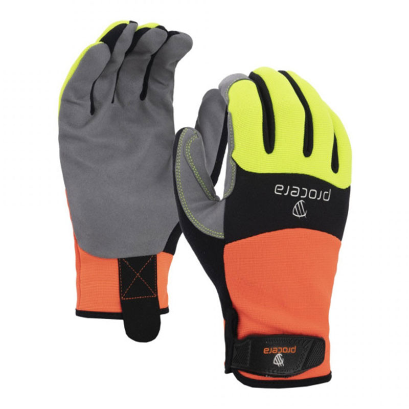 Предпазни ръкавици X-RENOVATOR, изработени в горната част от еластичен спандекс в ярки цветове и синтетична кожа на дланта.
