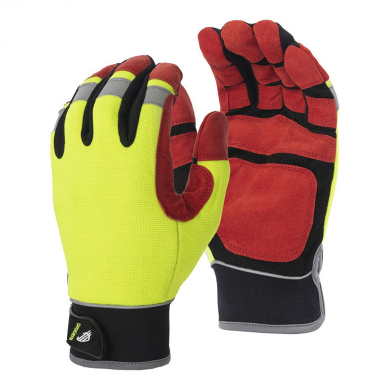 Предпазни ръкавици X-SYSTEM, изработени от разтеглив спандекс в ярко жълт цвят в горната част и синтетична кожа в захващащата част. Ръкавиците са с подсилвания на пръстите и дланта.